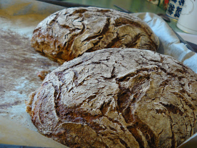 Lisäksi paistoin sekaleipää. Siitä piti tulla ruisleipää, mutta ruisjauhot loppuivat, joten siitä tuli ruisjuurella kohotettua ruis-speltti-siemen-vehnä-ruisrouheleipää. Ja hyvää!